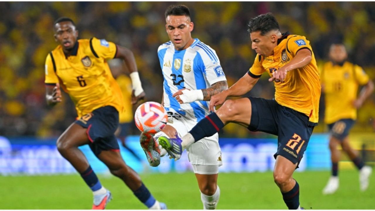 En un primer tiempo parejo por parte de ambos seleccionados, Ecuador tuvo las aproximaciones más claras, con el experimentado Enner Valencia, pero Emiliano Martínez estuvo firme en dos ocasiones: una con la pierna mano a mano en el centro del área y otra atajada complicada en el primer palo que envió al tiro de esquina.