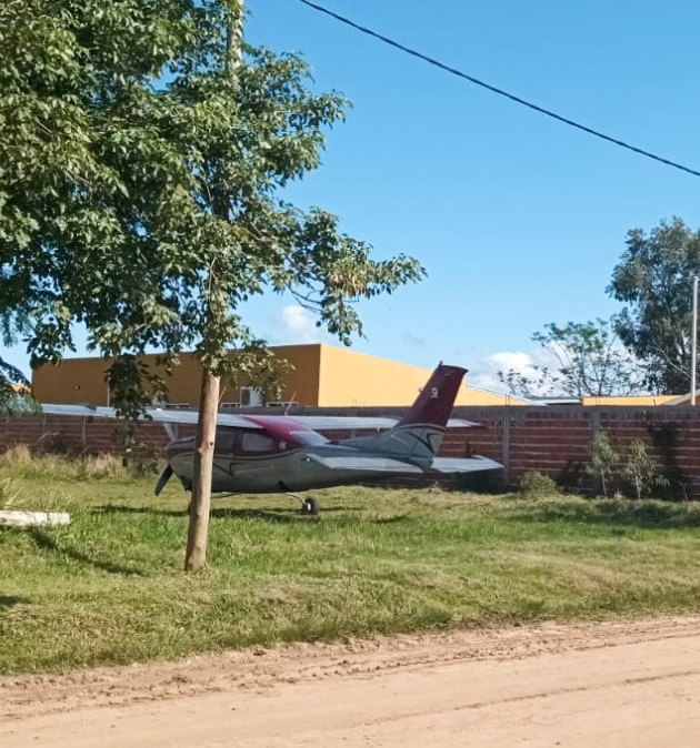 El Cessna, de origen boliviano y con rastros de cocaína; ahora forma parte del paisaje educativo en un predio que alumnos de la Escuela Técnica de Itá Ibaté utilizan para Educación Física, fútbol, vóley, eventos sociales y culturales. Hay indignación de la comunidad educativa y denuncian que la aeronave permanece sin custodia federal.
