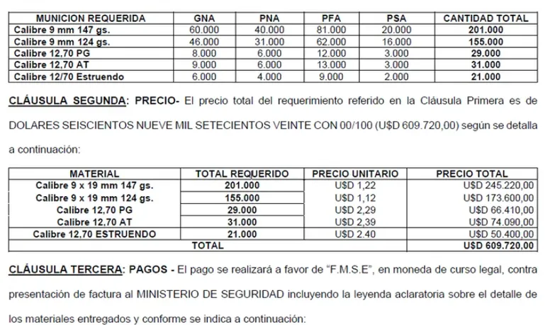 En el sitio oficial de contrataciones, Comprar.gob.ar, no hay antecedentes recientes de una adquisición con esa cantidad de munición realizada por la cartera de Seguridad. Algunas de las fuerzas, como Prefectura o Gendarmería, pueden realizar sus propias compras.