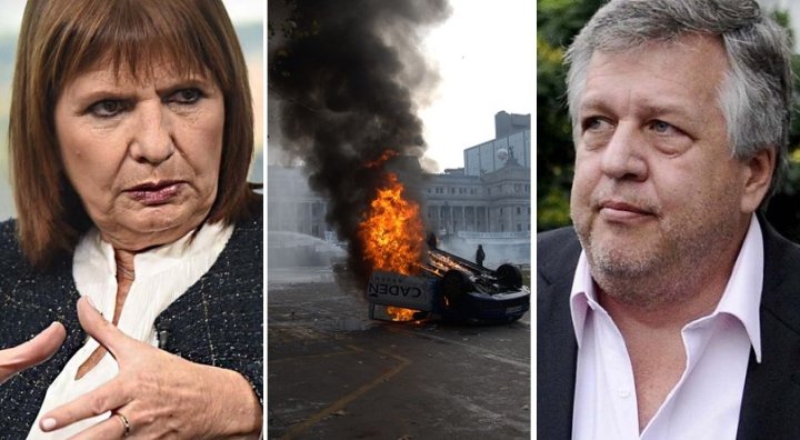 "Lo que pasó ayer es el kirchnerismo, la izquierda y los convocantes sindicatos, que se fueron temprano, se lo agradecemos, pero que tomen conciencia que son los provocadores de violencia", cargó. Se jactó de que las fuerzas a su cargo (estuvieron Gendarmería, Prefectura Naval y Policía Federal) actuaron "excelente", "con profesionalidad, con prudencia, pero sin dudar de que cuando hay que ir, atacar y no dejar que te tomen el Congreso...". Ya entonces deslizó que pediría que se acuse a los manifestantes de sedición.