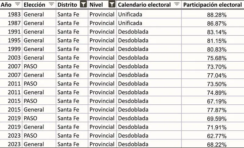 La elección a convencionales constituyentes de Santa Fe, reforma histórica por donde se la mire, no despertó entusiasmo ciudadano. 13 puntos menos de participación que la última elección general a gobernador (2023) y 7 menos que la más baja desde 1983 a la fecha (PASO 2023). https://t.co/Mz5PsLKn0m pic.twitter.com/VMUUVKMenP