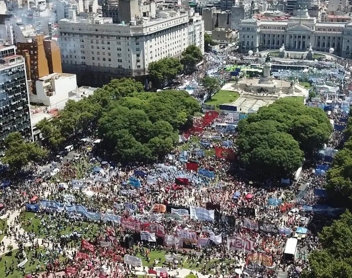 “Si sale, la Argentina va a estar peor. Mañana, si somos cientos de miles de argentinos y argentinas con banderas celestes y blancas, es esta plaza la que puede frenar a Milei”, agregó el ministro de Infraestructura y Servicios Públicos de la Provincia de Buenos Aires.