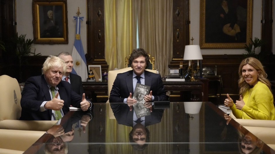 Como si se tratara de un primer ministro o de una figura reelevante en el tablero internacional, Milei recibió a Johnson por más de una hora y media en su despacho y hasta los propios colaboradores más cercanos del Presidente decían en los pasillos de la Casa de Gobierno que el encuentro no tenía importancia y que Johnson "es más casta imposible". El tema Malvinas, aclararon, "no fue ni siquiera mencionado". Si hablaron --además de Mick Jagger--, del recital que hace pocos días dio el exbeatle, Paul McCartney en la cancha de River.