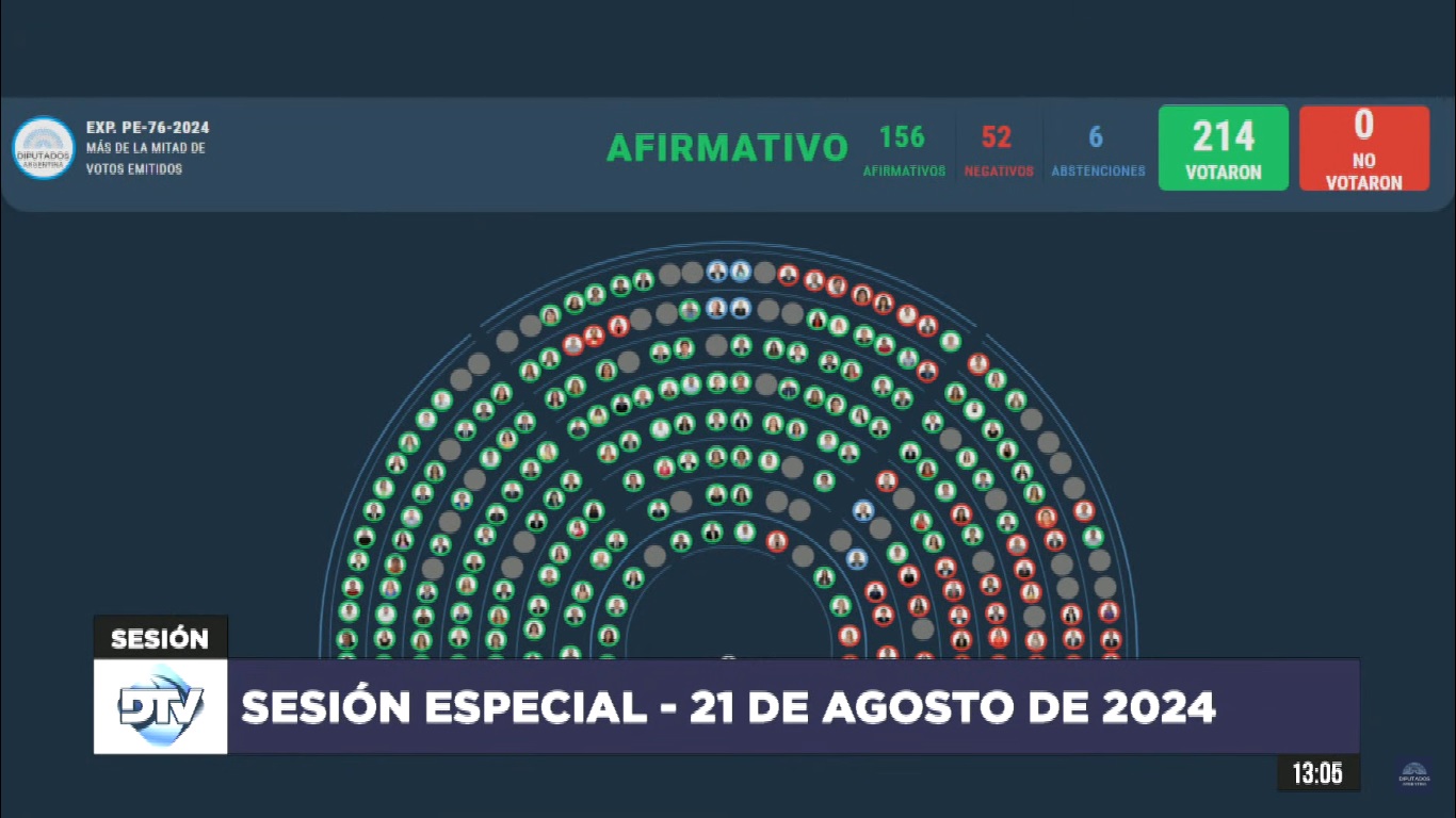 Con 156 votos afirmativos, 52 negativos y seis abstenciones, se aprobó la declaración de rechazo al DNU presentado por el Poder Ejecutivo como de “Fortalecimiento del Sistema de Inteligencia Nacional”.