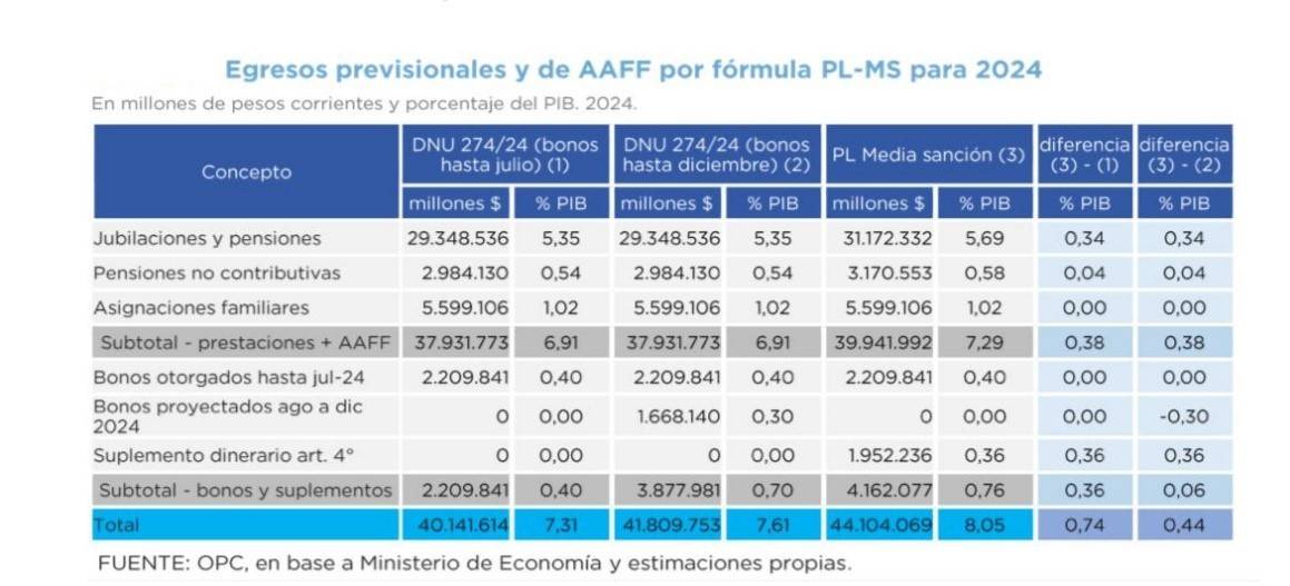 Según estimaciones de la Oficina de Presupuesto del Congreso (OPC), los cambios en la movilidad significarían un gasto extra del 0,45% del PBI en todo el año. Si se aplicara sólo desde septiembre, modificaría los guarismos, reduciendo el costo fiscal estimado.
