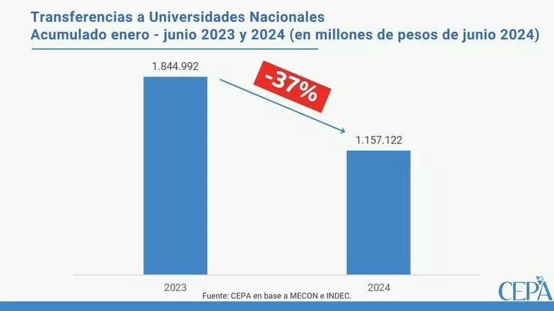 Esto se suma a la reducción del presupuesto transferido a las universidades, que alcanza una caída de -37,3% según el Informe Mensual de Ingresos y Gastos (IMIG), de carácter oficial.