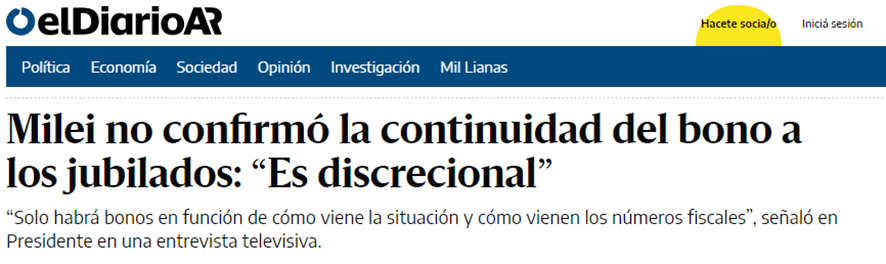 El Presidente Milei sostuvo el viernes en una entrevista para LN+ con Antonio Laje que los legisladores debían aclarar de dónde saldrían los fondos para financiar la medida.