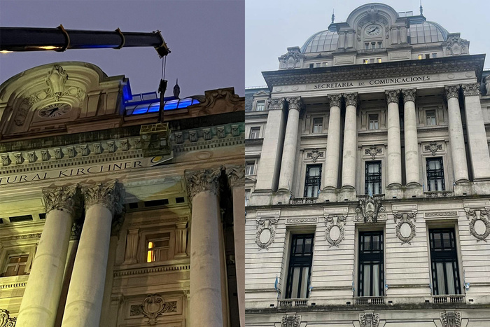 La acción fue difundida por el vocero Manuel Adorni. “Finalmente hoy se han concluido las modificaciones pendientes en la fachada del Palacio Libertad. Fin”, publicó el mandadero con fotografías que muestran las obras que dejaron sobre el frente la antigua denominación del lugar: Secretaría de Comunicaciones.