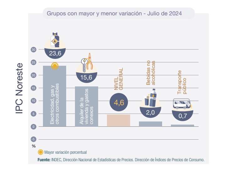Las cuatro provincias del nordeste argentino fueron las que más impacto tuvieron en el índice de precios al consumidor. Los servicios públicos tuvieron un fuerte impacto en la inflación general.