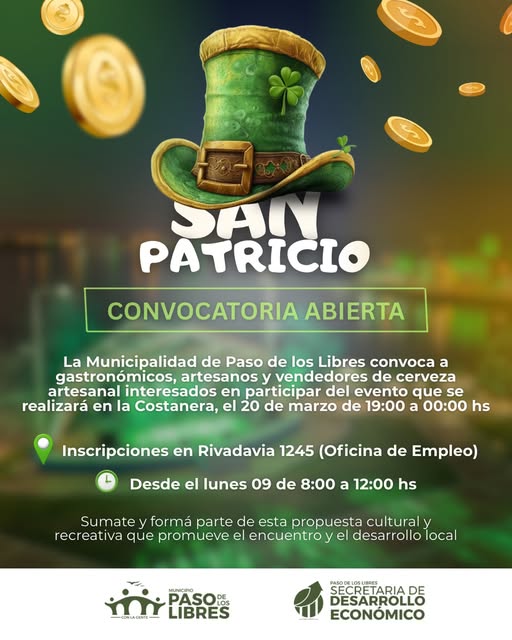 Esto es raro, muy raro... El municipio organiza para este 20 de marzo la celebración de la Fiesta de San Patricio, que no es más ni menos que una excusa para que nuestros pibes se junten en la costanera a tomar toda la cerveza que puedan pagar.
