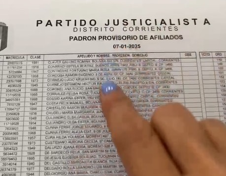 El padrón provisorio se puede consultar ingresando a la página web https://pjcorrientes.org/ . Además, está disponible de forma física de lunes a viernes, de 17 a 20 horas, en la sede del Partido Justicialista de la Provincia de Corrientes (Salta 663), de la ciudad de Capital.