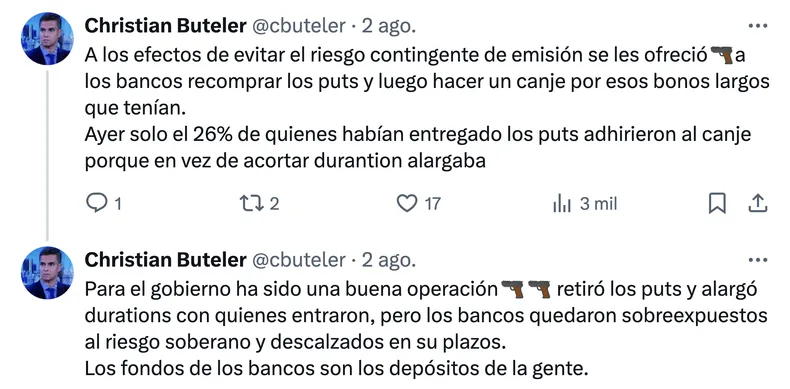 Otro indicio generó pesimismo en el cierre de la semana: el fracaso de la licitación por los instrumentos que el Banco Central les ofreció a los bancos para entregar sus puts, esos peligrosos seguros de recompra a valor nominal de los títulos de deuda con los que la autoridad ha empapelado a las entidades. Con una aceptación de apenas el 26%, las dudas crecen.