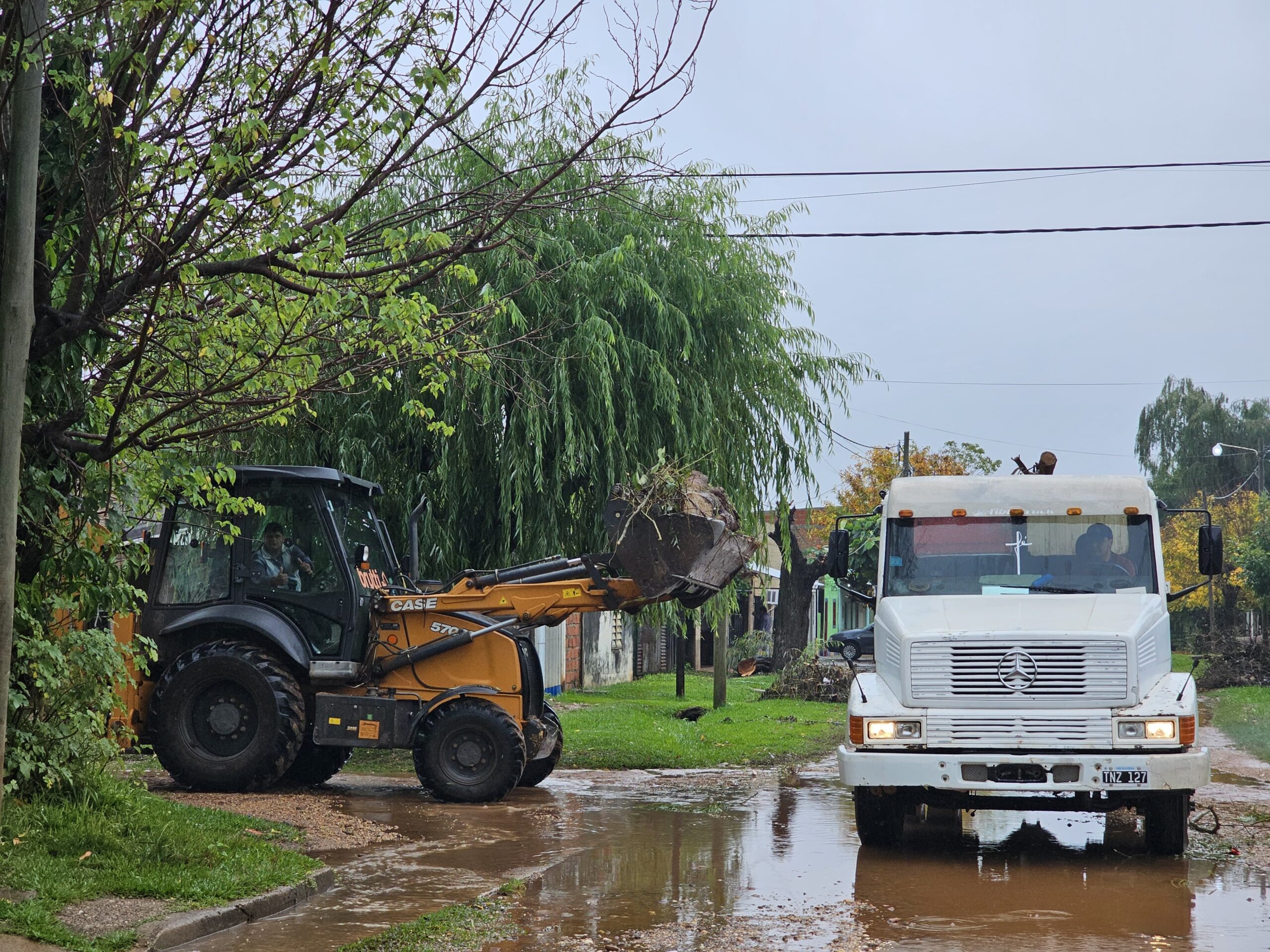 También se intensificaron los trabajos con maquinaria y personal operativo en zonas clave para facilitar el drenaje del agua acumulada y asistir a las familias afectadas. Las tareas se concentran en: