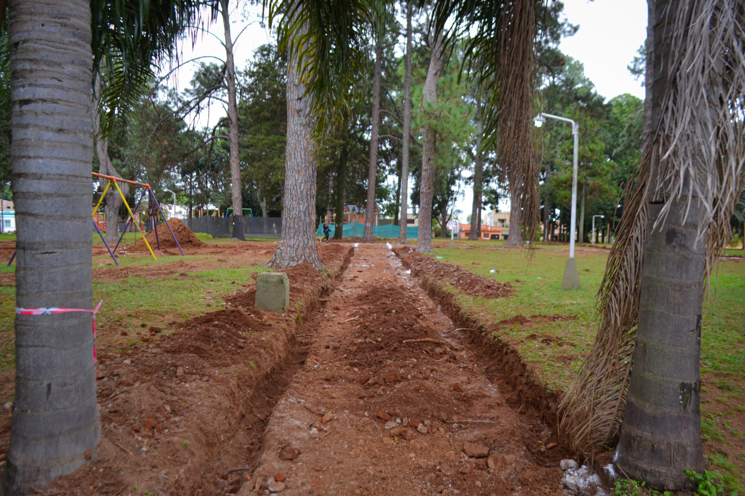 El viceintendente Marcelo Cuevas y el concejal Miguel Arias recorrieron la plaza para supervisar el avance de los trabajos y dialogar con los responsables de la obra, que se desarrolla en el cuadrante comprendido por las calles Yatay, Esteban Alisio, Los Ciento Ocho y Teófilo Niveyro.