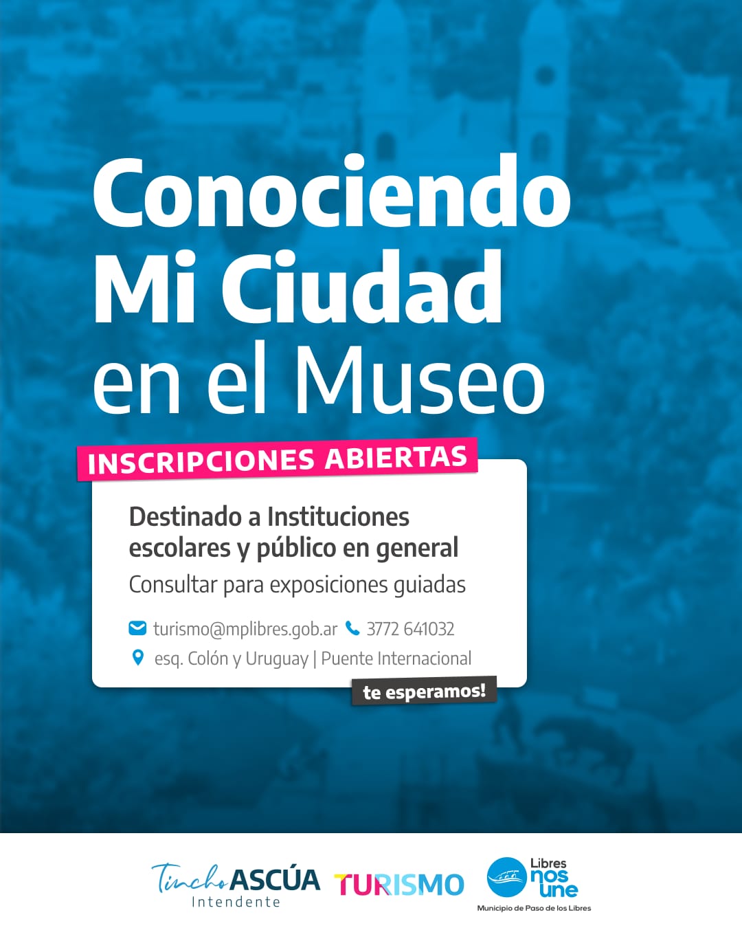 La Dirección de Turismo del Municipio de Paso de los Libres informa que se encuentran abiertas las inscripciones para participar del programa “Conociendo Mi Ciudad en el Museo”, una propuesta educativa y cultural destinada a instituciones escolares y al público en general.