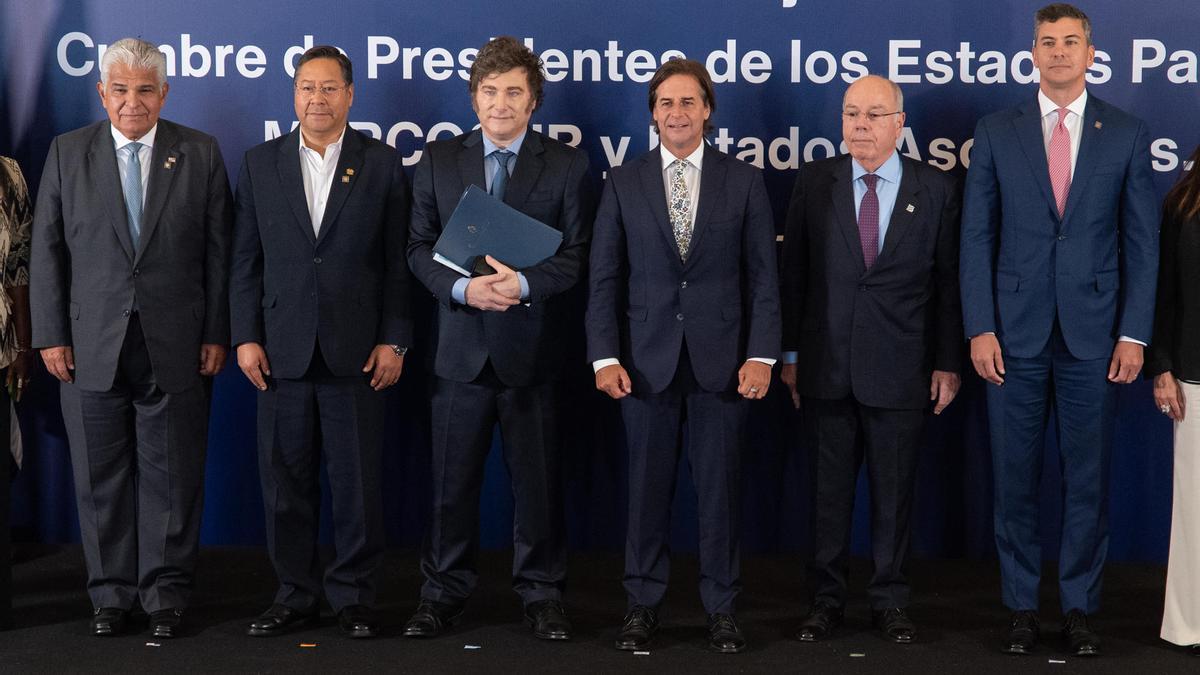 Apenas finalizada la cumbre en Montevideo, los mandatarios fueron a posar para la foto final con Milei a la cabeza. Sin embargo, Lula dejó como representante a su ministro de Relaciones Exteriores, Mauro Vieira, y sus allegados explicaron que su ausencia se debía a que tenía una reunión.