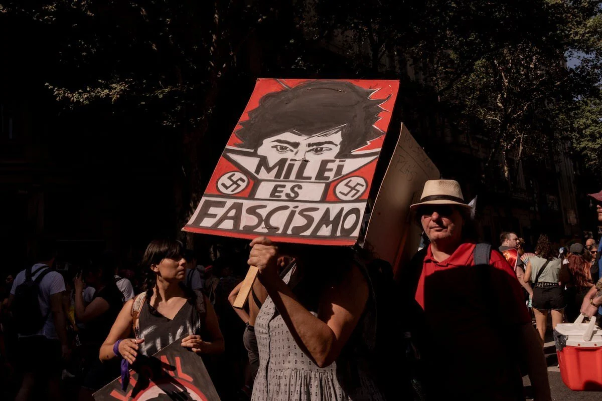 avier Gerardo Milei fundó su propia tormenta perfecta y el pueblo le dijo basta en la mayor protesta antifascista y antirracista que haya vivido la Argentina en años. El relato liberal libertario que en verdad usa y se apropia del concepto anarquista del libertarismo para imponer su plan de sesgo neonazi y fascista quedó debilitado y perdió el control de la calle. Las manifestaciones populares se produjeron en Buenos Aires con más 200 mil personas que se amucharon en un grito contra Milei desde el Congreso hasta la Plaza de Mayo bajo una temperatura de 35 grados. Lo que comenzó siendo una protesta impulsada por el Movimiento LGTBIQ+ fue calando en solidaridad hacia el resto la sociedad que se sintió agredida por el discurso odioso y agraviante de Milei en el Foro de Davos.