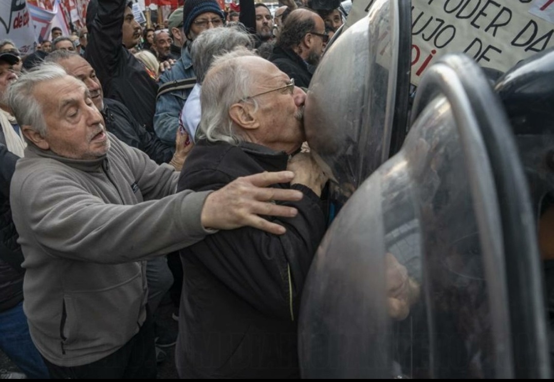 “¡Que todo el mundo escuche y entienda bien! ¡Es un gobierno dictatorial! ¡Este gobierno no da más!”, exclamó un jubilado ante los móviles de televisión, con los ojos irritados por el gas lacrimógeno.