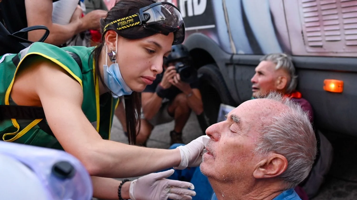 “¡Que todo el mundo escuche y entienda bien! ¡Es un gobierno dictatorial! ¡Este gobierno no da más!”, exclamó un jubilado ante los móviles de televisión, con los ojos irritados por el gas lacrimógeno.