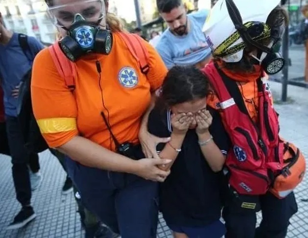 Colombo, que estaba allí, tenía la máscara de boca y nariz, pero no tenía nada que le protegiera los ojos, donde llegó el gas. En ese momento, salió del tumulto para ver si podía ser asistida de alguna forma, pero se dio vuelta para no perderse la situación. "Veo que atrás mío estaba esta situación que acabo de tuitear, que es la nena con las dos rescatistas. Entonces les hice las seguí hasta que la entraron en una parrillita que está por Rivadavia y Callao. Entró la nena con las rescatistas a la parrilla, que la abrieron para que puedan limpiarla, y después yo me fui a buscar un poco de óleo calcareo para limpiarme yo", contó a El Destape.
