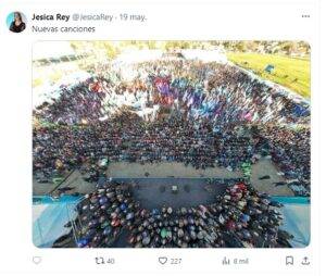 Su secretaría de medios, Jesica Rey, publicó en sus redes sociales una foto aérea del acto multitudinario que Kicillof encabezó hace ocho días en Florencio Varela, con un escueto comentario.