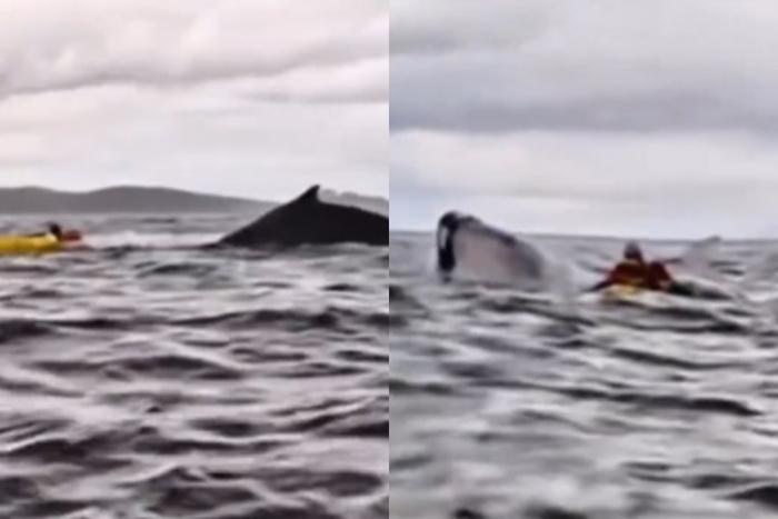 El joven practicaba kayakismo con su padre cuando una ballena jorobada se cruzó en su camino y se lo tragó. Rápidamente lo escupió, y fue rescatado por el papá, que filmó todo.