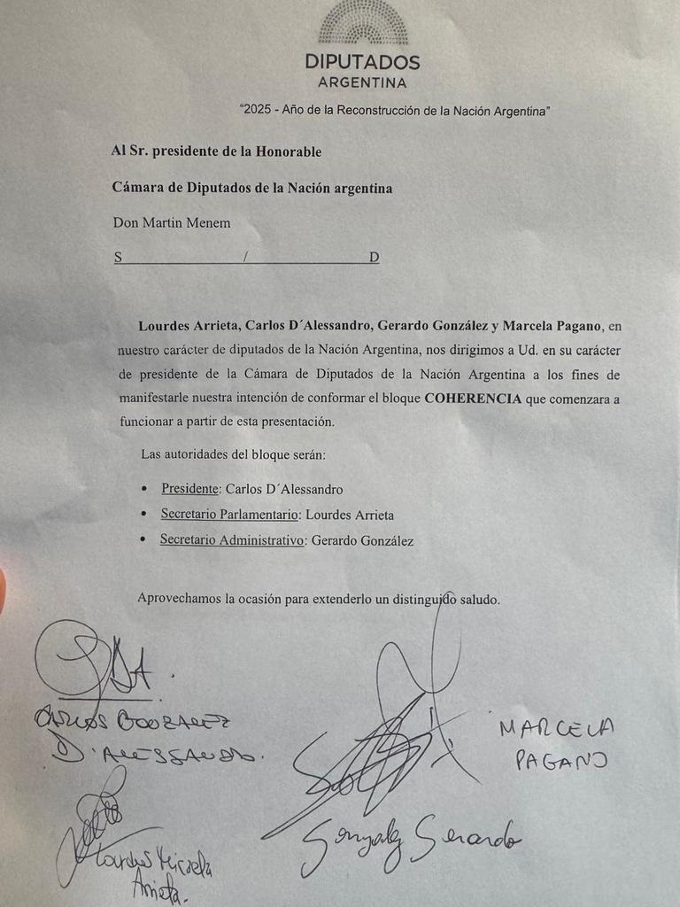 Marcela Pagano, Carlos D'Alessandro, Lourdes Arrieta y Gerardo González anunciaron la creación del bloque "Coherencia"