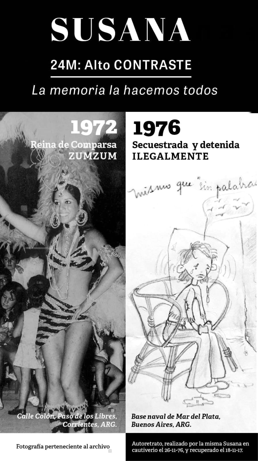 Hoy recibí la historia de Susana, ex Reina de la Comparsa en 1972. 4 años después fue secuestrada, desaparecida y asesinada por la dictadura. El mismo destino de su compañero. Ella dibujaba y algunos de sus trabajos fueron hechos en cautiverio.
