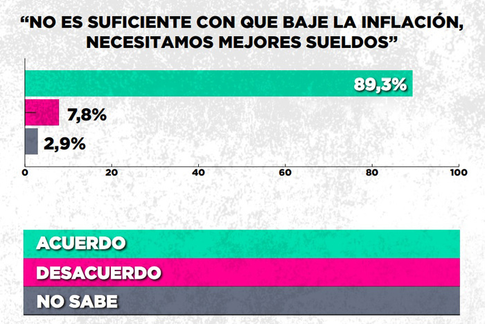 La frase que generó los mayores niveles de adhesión fue “No es suficiente con que baje la inflación, necesitamos mejores sueldos” (obtuvo el acuerdo del 89 por ciento).